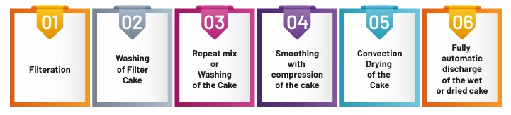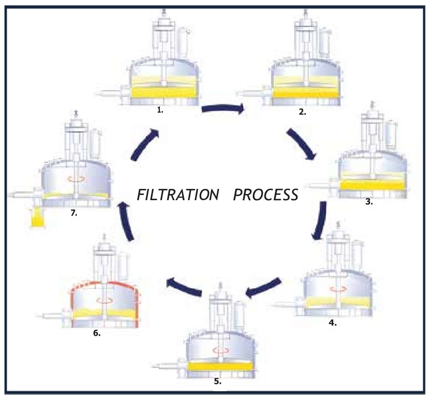 • Agitator moves clockwise, anticlockwise, up and down. This ensures thorough washing and re-slurring of the cake.